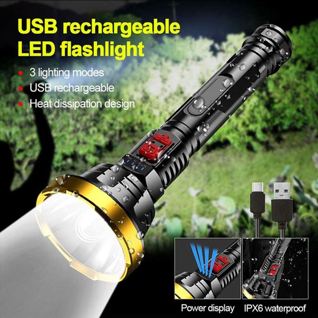 Powerful Outdoor Multifunctional LED Flashlight Waterproof Rechargeable Torch Torch with 3 Brightness Levels