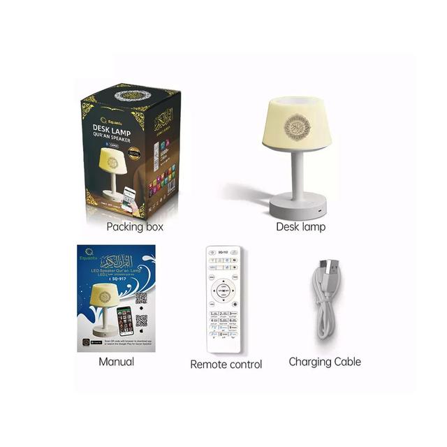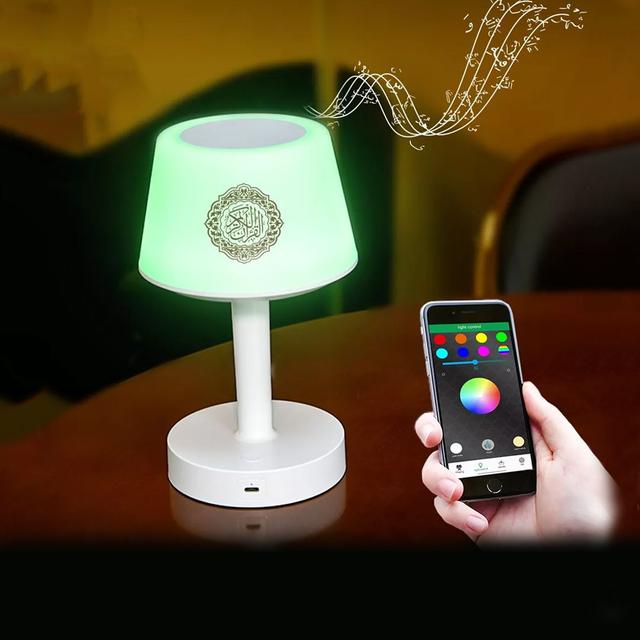 Desk Lamp Qur'an Speaker/Azan Clock/Bluetooth, 7 Colors LED Touch Table Lamp 8GB, With 16 Reciters