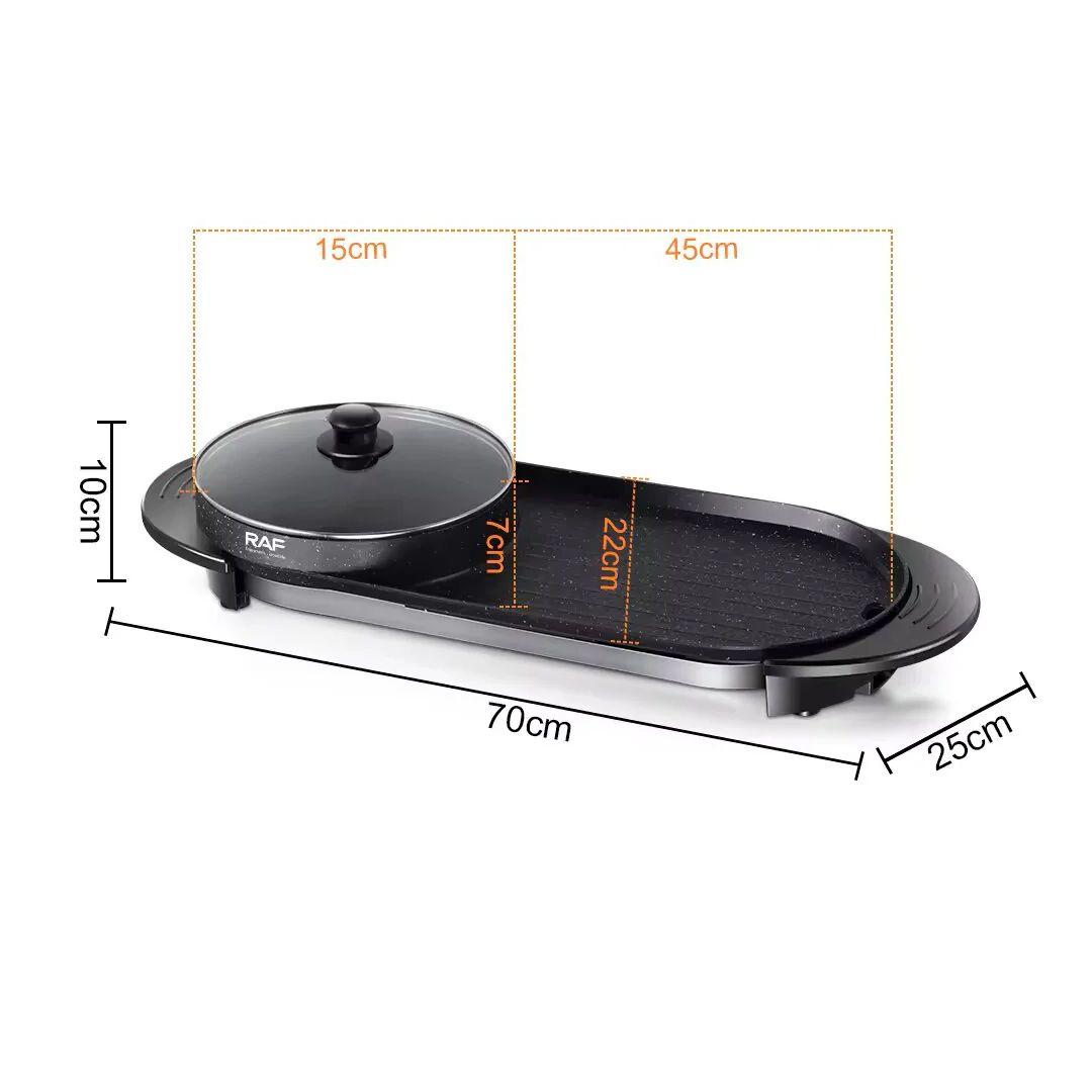 RAF R.5413 Electric Grill 2 in 1 Pot 1800W Non-Stick Cooking Surface With Temperature Control