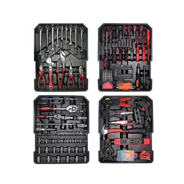 187 pieces are arranged on four professionally arranged shelves, making each tool easy to find, without wasting time searching and organizing. All pieces are made of high-quality, corrosion-resistant materials that will last for years of heavy work.