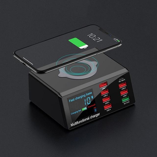 Wireless Charging + PD18W + QC 3.0 + 6 USB Multi-function Charger for iPhone and Android