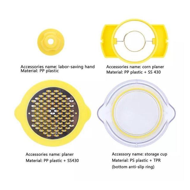- Multi-functional Tool: Works as a corn grater, vegetable grater, ginger peeler, and garlic and fruit slicer, all in one device.