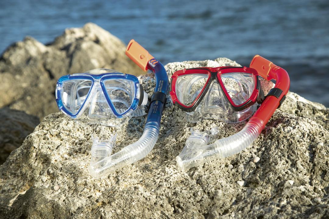The snorkel is equipped with an ergonomically designed silicone mouthpiece and an adjustable clip to secure the mask securely. All materials used are latex-free and safe even for prolonged use.