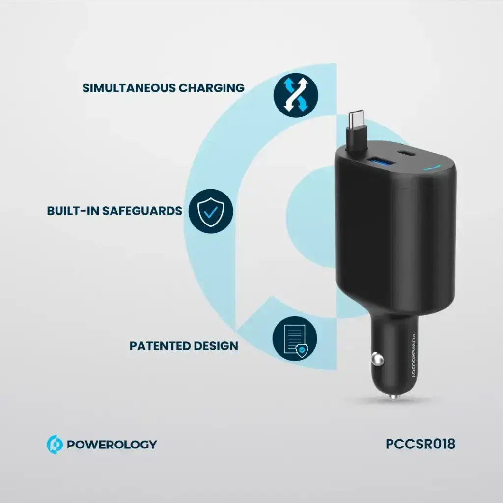 If you're constantly on the go, the Powerology Retractable Car Charger with Type-C Cable will be your perfect companion.
