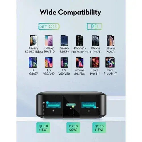 - iSmart Output (QC 3.0): 5V 3A, 9V 2A, 12V 1.5A, up to 18W