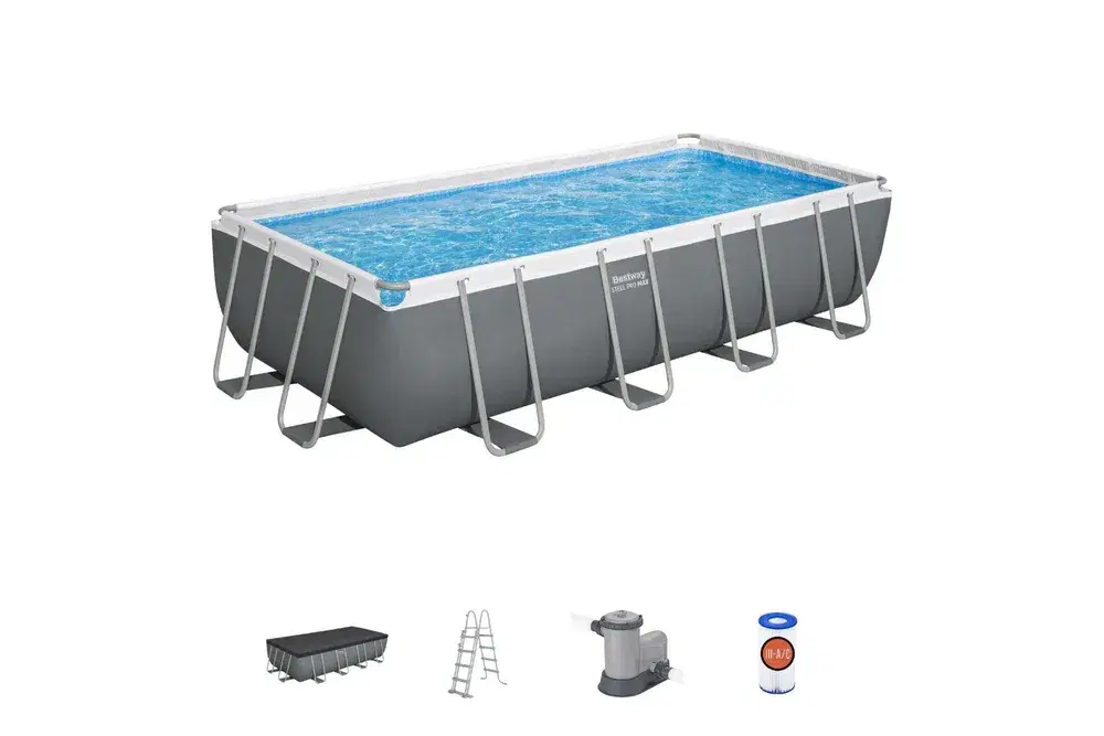 BESTWAY 56671 4.88M X 2.44M X 1.22M RECTANGULAR POOL SET (Contents:Pool, Sand Filter Pump(220-240V), Ladder, Cover, Chemconnect Dispenser)
