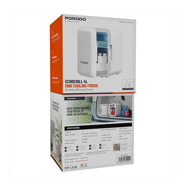 - With the Porodo Lifestyle Echochill Mini Cooling Fridge, keep everything cold all the time wherever you are! Order now and enjoy your cold drinks and items throughout the day!