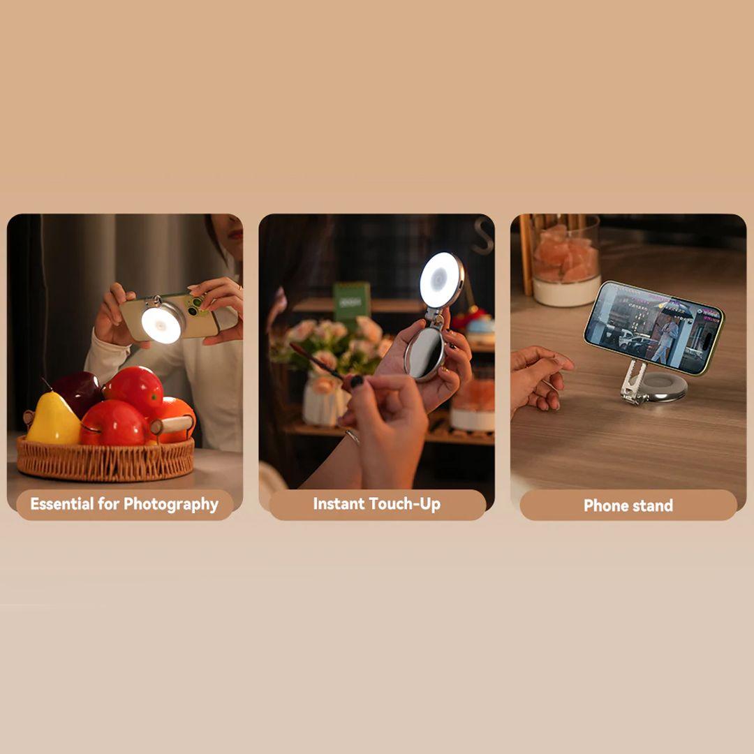 Not just a light: it also serves as a phone holder, video conferencing light, makeup mirror, and a mood-lighting accessory for any scene.