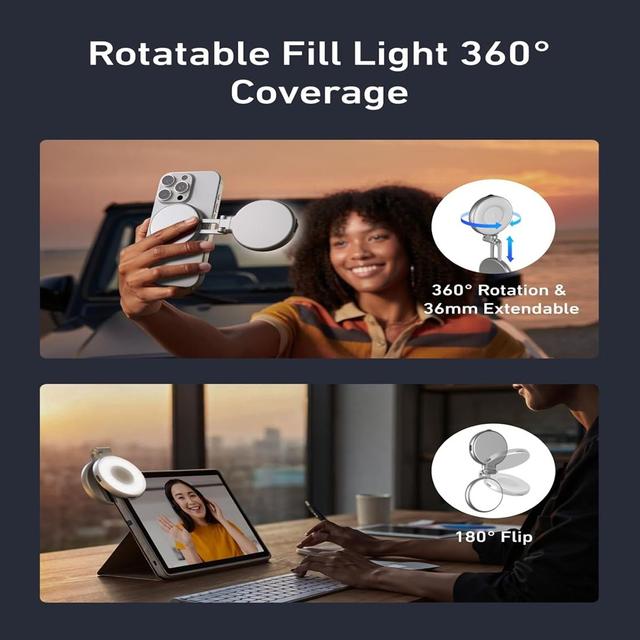 Easily change the light direction without repositioning the device. From soft front-facing selfie light to creative backlight – all angles are perfectly covered for ultimate flexibility.