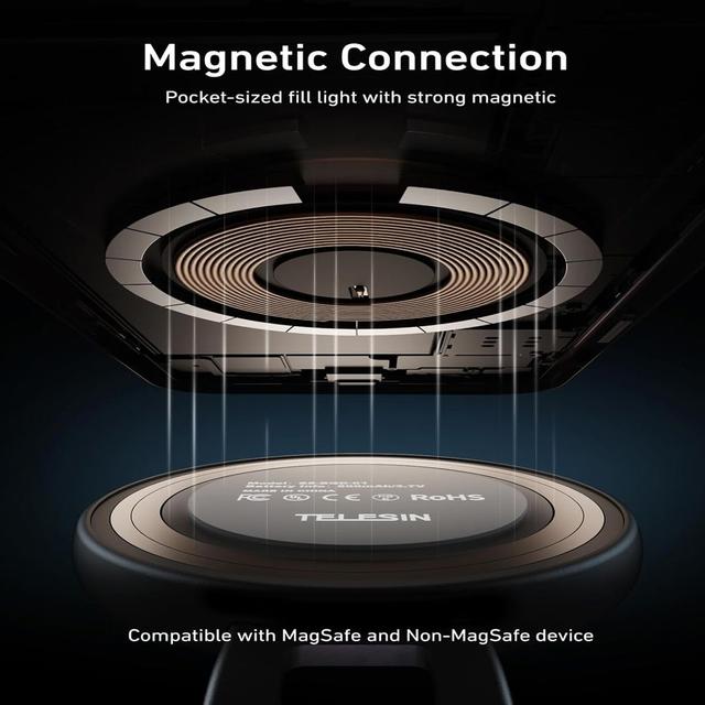 Telesin C03 works with iPhone MagSafe directly and can be mounted on any Android phone, laptop, tripod, or selfie stick using the included adapter.