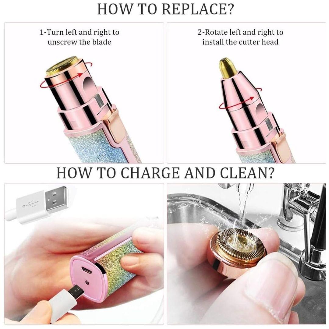 The precision head is hypoallergenic, making it safe for all skin types. No irritation, redness, or cuts – even on sensitive areas around the eyebrows and lips.