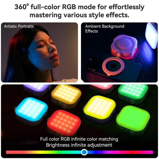 With over 360° RGB options, you can easily switch and play with different moods—whether it’s casual selfies or creative video shoots.