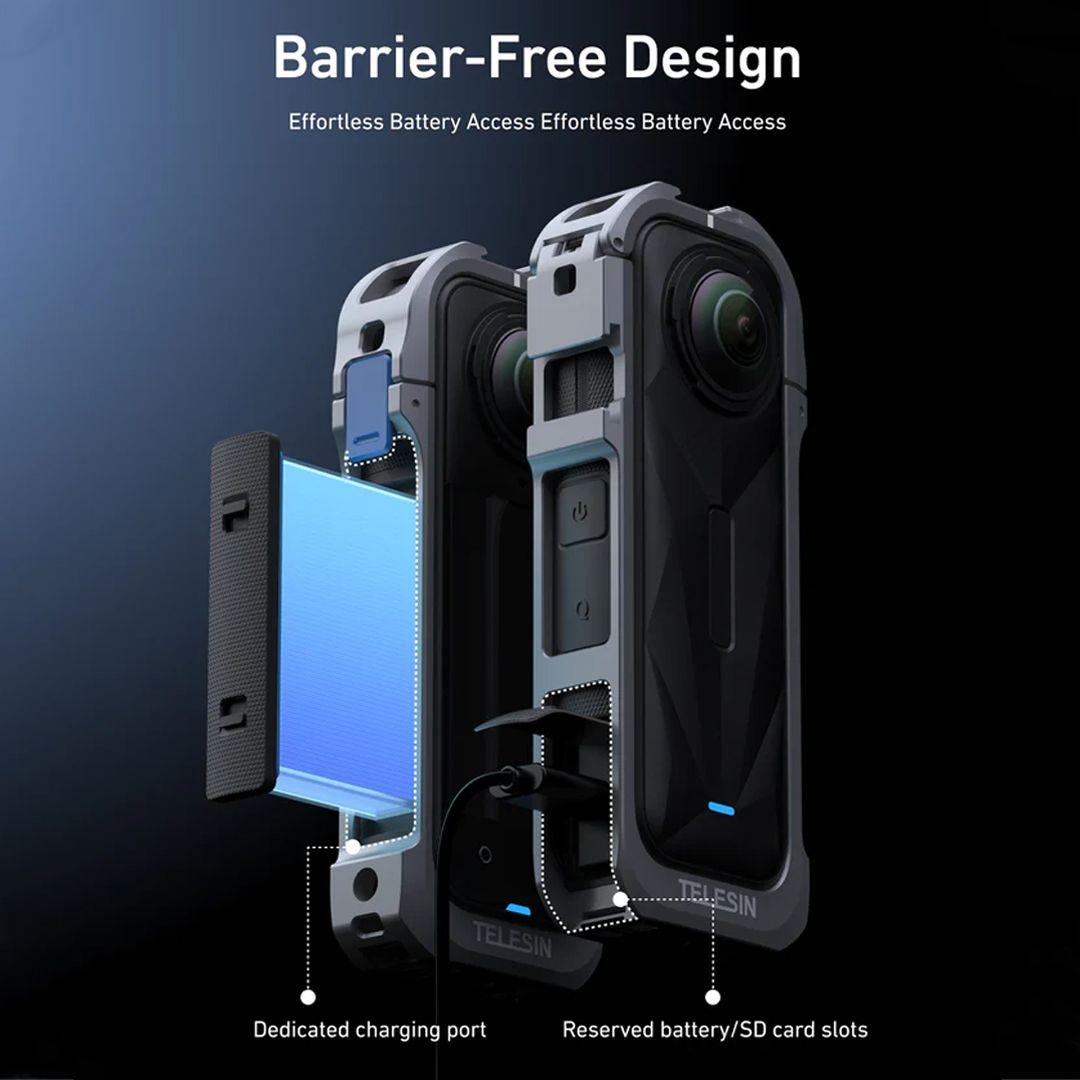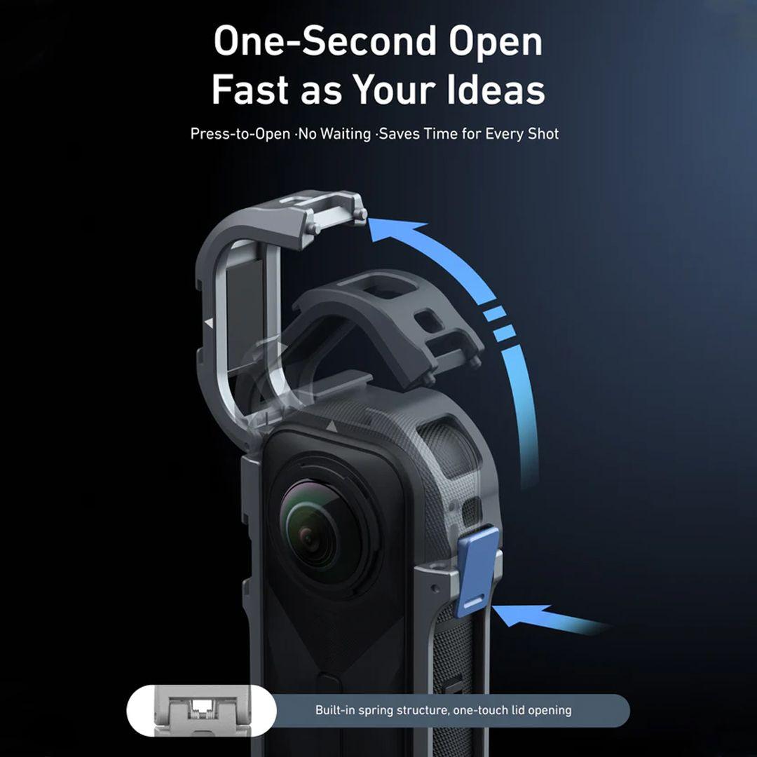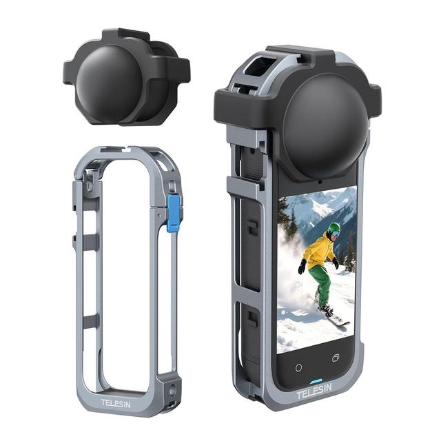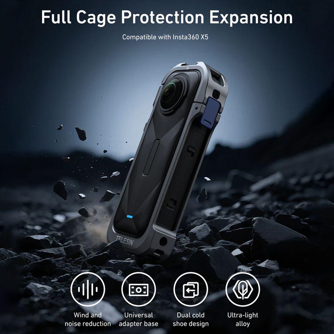 Aluminum Protective Cage from TELESIN S6-FMS-19-TIS for Insta360 X5 Camera with Quick-Lock System