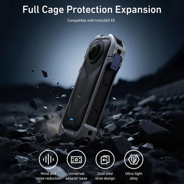 With the TELESIN Protective Cage for Insta360 X5, you can enjoy worry-free shooting without scratches or impacts. The lightweight aerospace-grade aluminum frame keeps your camera solid and secure, ensuring your work always stays clean and professional—even with heavy daily use.
