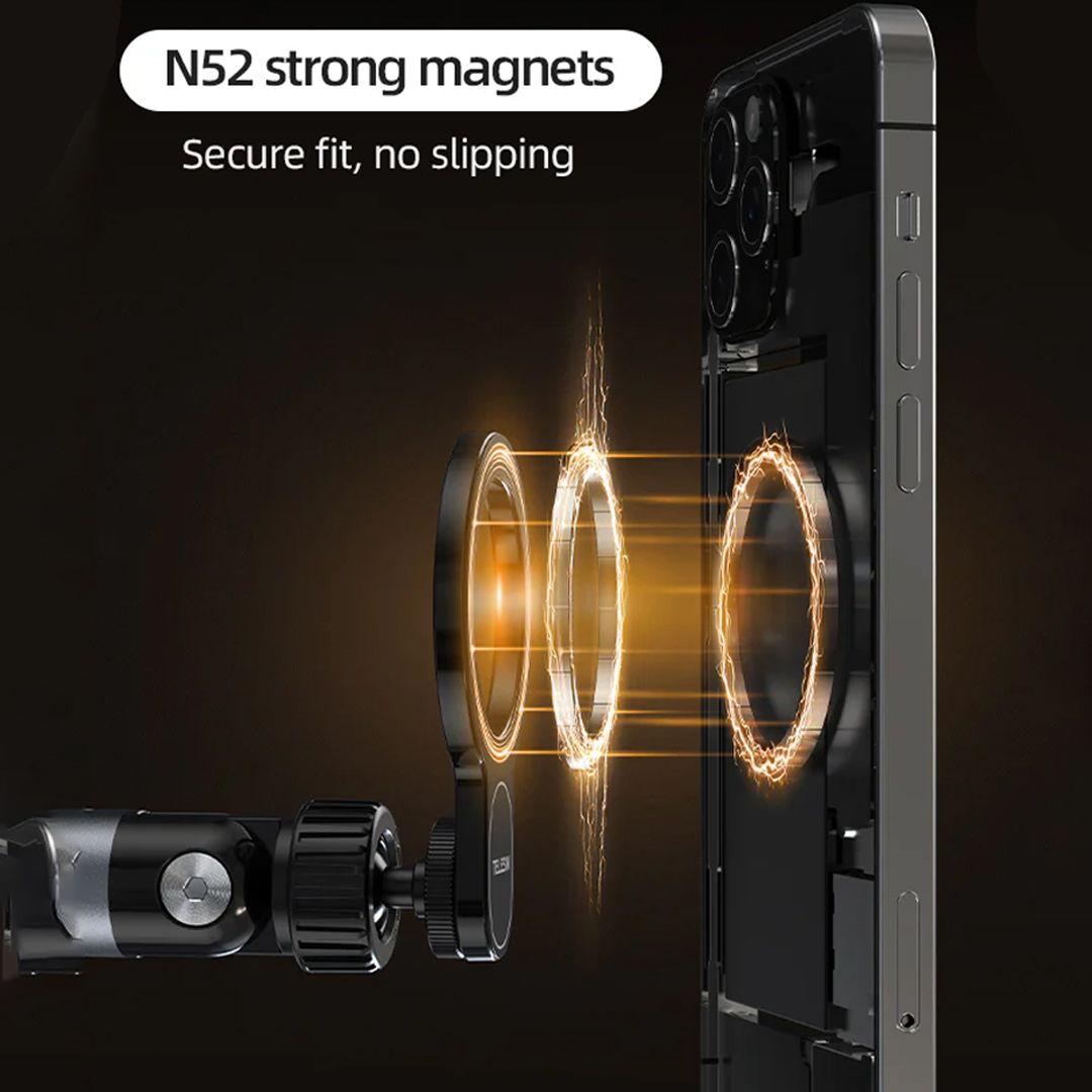 Works directly with MagSafe iPhones (13/14/15 series). Other phones and tablets can be mounted using the included magnetic ring.