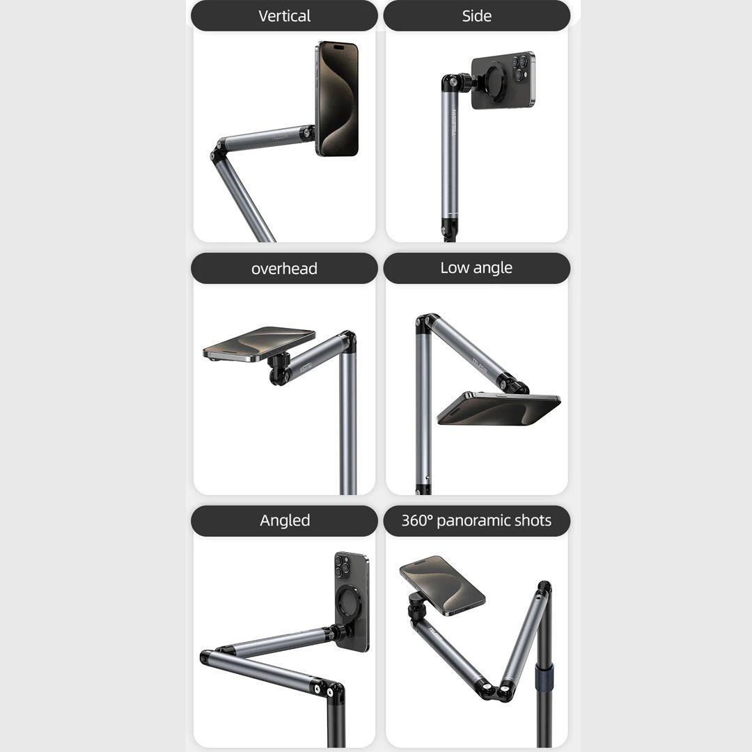 Tired of stacking your phone on a chair, box, or random surface every time you want to film or go live? Or frustrated with shaky stands that keep slipping and need constant adjustment? With TELESIN’s magnetic floor stand, all that hassle ends—enjoy stability, the perfect angle, and full hands-free freedom without any complications.