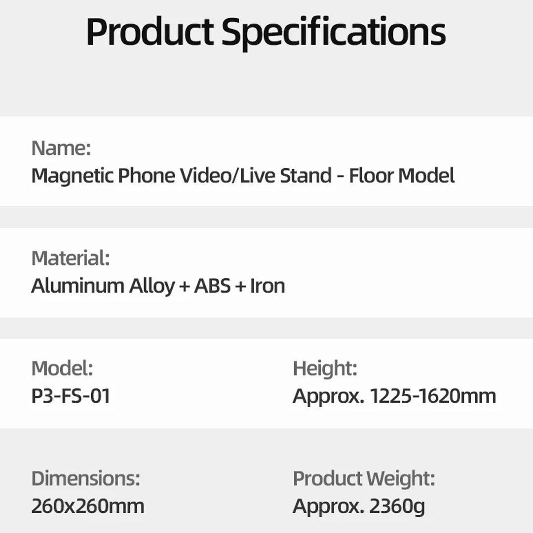 TELESIN - P3-FS-01- Magnetic Floor Stand – Adjustable Height up to 160 cm