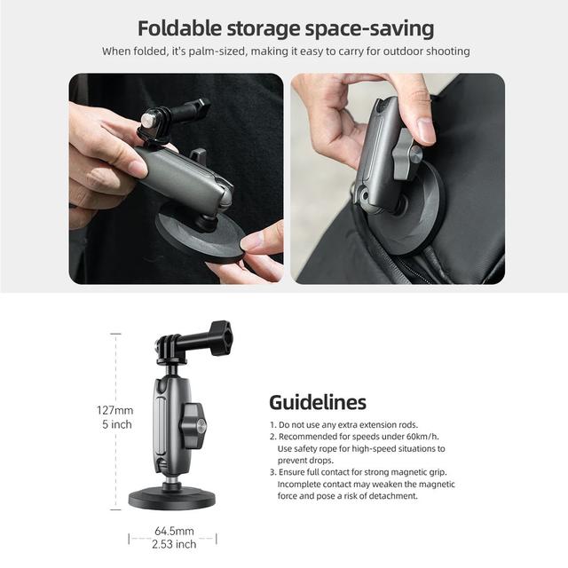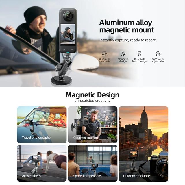 Tired of struggling to stabilize your action camera on metal surfaces, or wasting time finding the right angle while filming on the go? Whether you're shooting from a car, at the gym, or during outdoor adventures, shaky footage and weak mounts can ruin the shot. With the Telesin Magnetic Base, you finally get a rock-solid mount that installs in seconds, stays fixed no matter the movement, and gives you full freedom to adjust angles exactly the way you want.