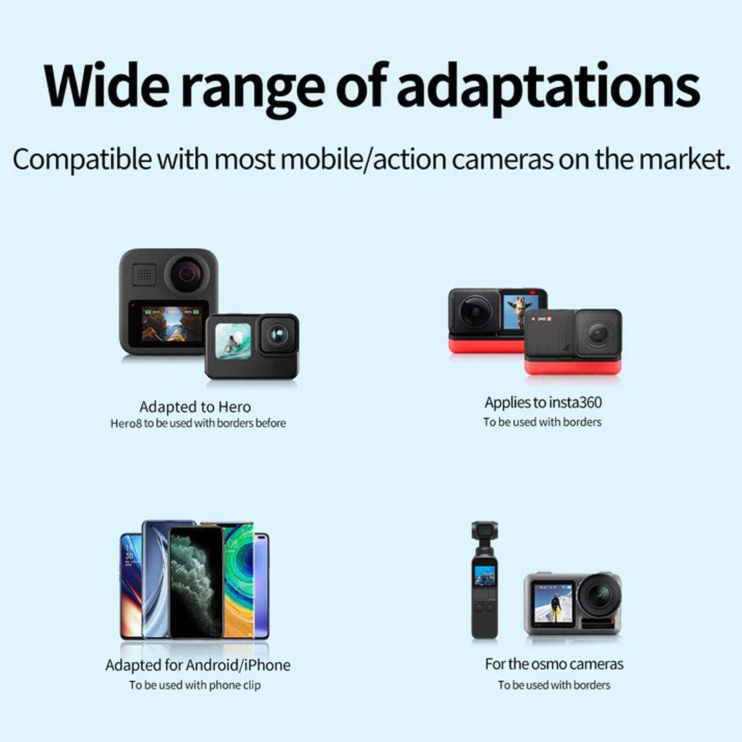 Compatibility: Action Cameras (GoPro, DJI Osmo Action, Insta360, etc.) + Smartphones (with additional accessory)