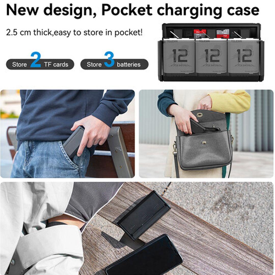 TELESIN S0-ECB-12-TGP Portable Camera Battery Charging Case Fits up to 3 Batteries