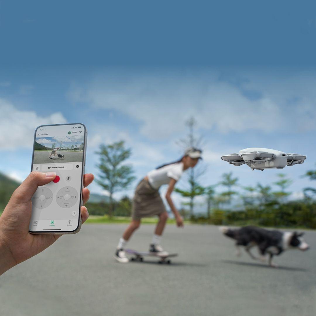 - Control: palm takeoff/landing, voice commands, mobile app, or controller-free.