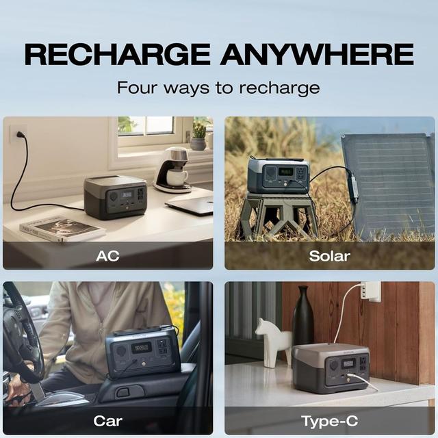 No matter where you are, River 2 offers 4 ways to recharge: AC, car, solar, and USB-C. This means you can charge it at home, on the road, or outdoors using solar panels, keeping you powered anytime, anywhere.