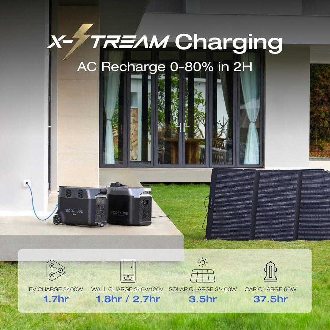 Fully charge in just 2.7 hours from AC or around 3 hours with solar panels — faster than any generator in its class!
