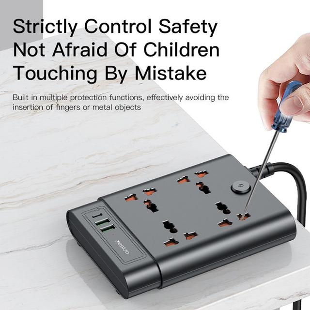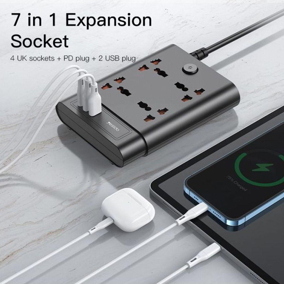 With the Yesido MC11, that problem is history. A smart, powerful, and long 2-meter power strip with a massive 2650W capacity, giving you 7 ports in one device to make life easier—whether at home or in the office.
