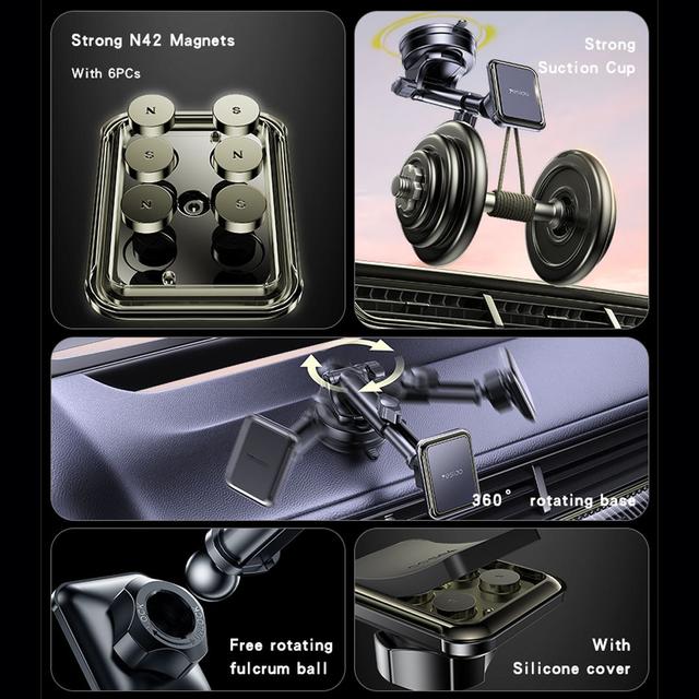 - The strong magnetic base with 6 N52 magnets keeps your phone firmly in place, so you don’t have to worry about it falling.