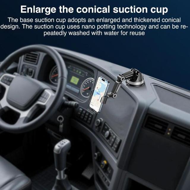 The base is equipped with Nano Gel suction technology that adheres firmly to dashboards or windshields.