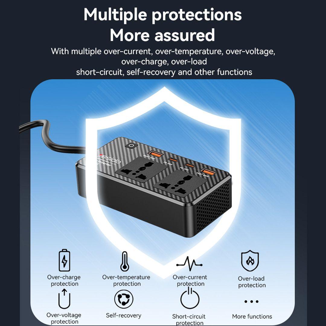 Charge all your devices easily: From mobile phones to laptops, and even small devices – the inverter provides you with AC and DC outputs to connect all your needs while traveling.