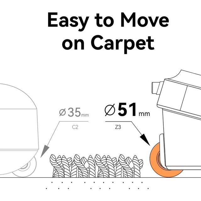 Equipped with large front rollers, it moves smoothly from room to room with no effort.