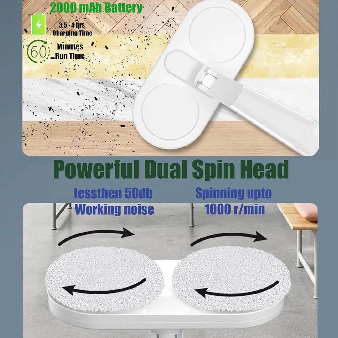 Dual cordless electric spin mop with a 2000mAh rechargeable battery