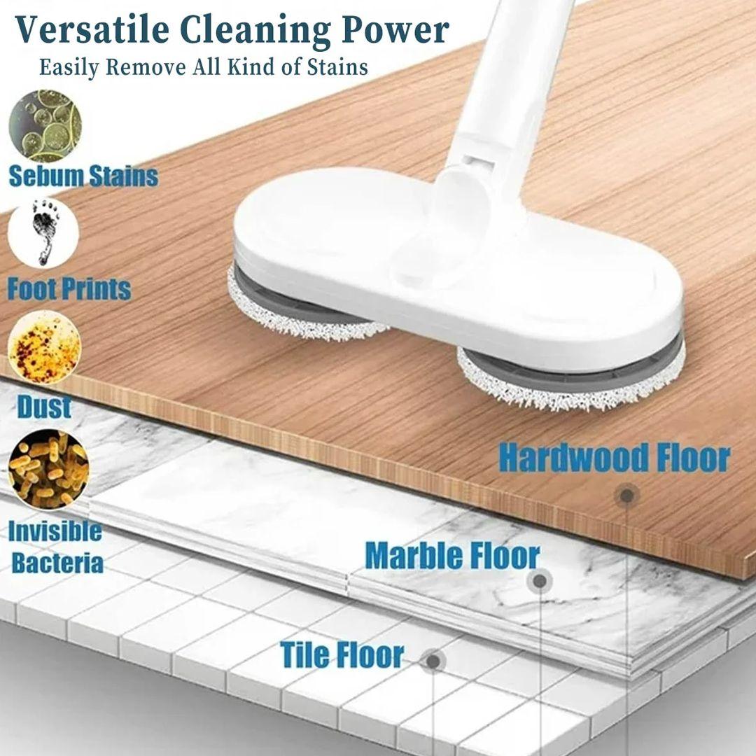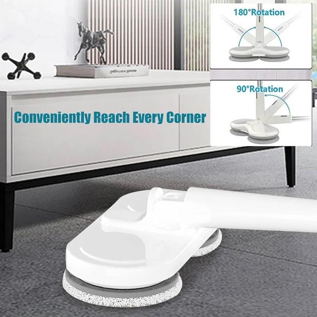 You’ll see the difference from the very first use. The dual-motor system spins up to 200 times per minute, removing dust and tough stains easily — even in hard-to-reach corners.