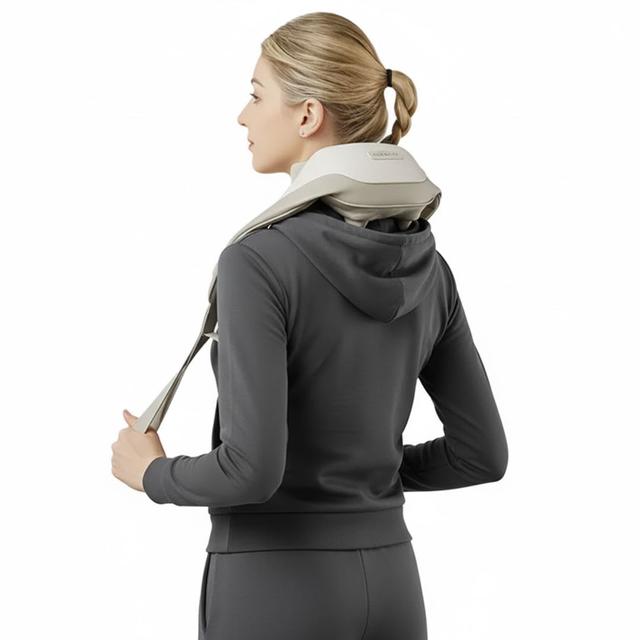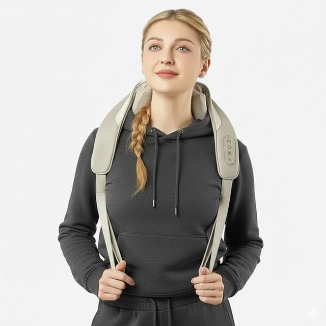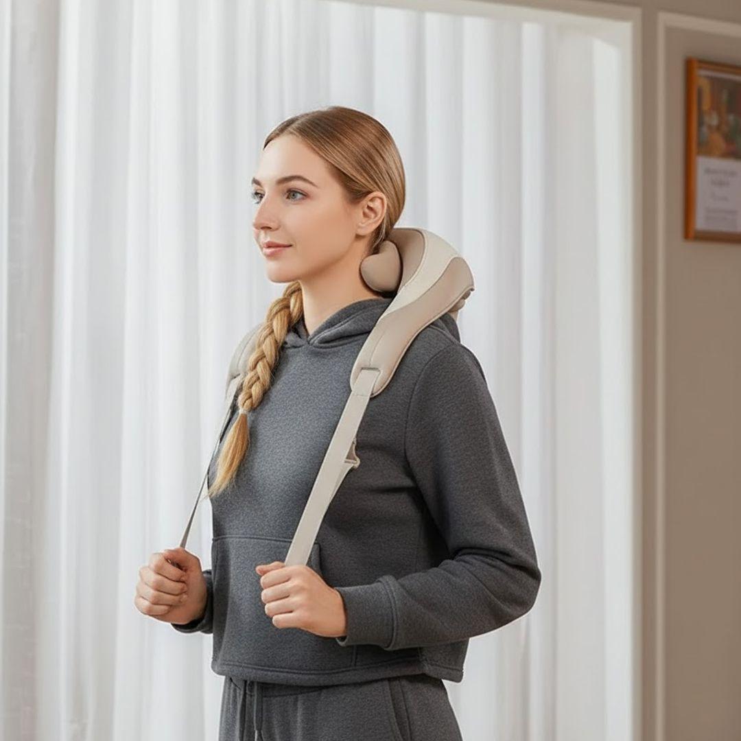 Lightweight and wearable — no need to hold it while in use. It sits comfortably around your shoulders, letting you move freely, work, or relax during your massage.