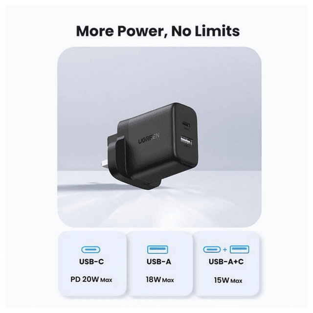 Dual Ports Design - Charge your iPhone 16/15/14 Pro Max via 20W USB-C while powering a tablet/AirPods with 18W USB-A. Eliminate waiting—perfect for students sharing outlets or families with multiple devices