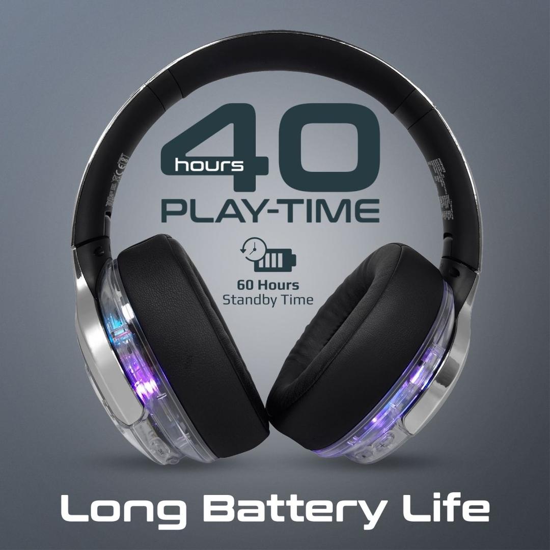 Features Enhance your Experience with Redefined Acoustics: TransTune wireless headphones deliver brilliant sound quality punctuated with superior bass, so every track on your playlist pops. The powerful 40mm speaker drivers and Bluetooth v5.3 ensure an exhilarating wireless listening experience paired with finely tuned acoustics and thumping bass. Advanced Bluetooth v5.3 for Efficient Functionality: Bluetooth v5.3 is used to connect to your device; allowing you to simply place them on your ears and forget they are there, immersing yourself in your audio experience - whether that be gaming, work or just listening to your favorite song. This latest Bluetooth technology also provides faster pairing, a more stable connection, and universal compatibility with top-notch sound quality. These headphones are completely wireless from 10 to 15m. Ergonomic Design for Extended Comfort: TransTune is ergonomically designed to fit the unique contour of your ears for extended comfort. Simply place them on your ears and forget they are there. The padded earcups are placed to provide extra comfort to your ears for longer durations. RGB Rainbow Mesmerizing Lights: Immerse yourself in a visual spectacle as the headphones come alive with stunning and vibrant RGB lights. Elevate your listening experience with a dynamic display of colours that sync with your music, adding a touch of excitement to every beat. Transparent Glamorous Design: The earcups of TransTune are encased in a transparent shell, not just for a striking aesthetic but also to enhance the visual impact of the brilliant RGB lights. This unique design not only showcases the premium craftsmanship but also allows the vibrant colours to radiate, creating a captivating and personalized audiovisual experience. TransTune Headphones redefine how you engage with your music, ensuring that your style shines as brightly as your sound. AUX Support for Wired Listening: This wireless Bluetooth headphone also comes with a built-in 3.5mm AUX port. TransTune is thus also compatible with most mobile and audio devices that have an AUX port like laptops, PCs, smartphones, tablets, and more. Switch Between Wireless or Wired Mode for Headphone: WIRED MODE: Use the included audio cable to convert this sleek wireless headphone into a traditional wired pair. Just plug the cable into a headphone jack for some old-school listening. WIRELESS MODE: You can enjoy our Bluetooth Mode for a long playtime due to the built-in 600mAh battery capacity. In-built Mic for Clear and Convenient Calling Functions: Enjoy the convenience of crystal-clear hands-free calling with the integrated microphone. This mic captures crystal clear voices and can be used for normal calls, zoom calls, recording videos, etc. Keep your phone in your pocket and your head up to the world with easy access to all calls. 40H Long Playing Time with 600mAh Battery: The Promate TransTune Headphones have a built-in 600mAh rechargeable lithium-polymer battery that supports up to 40 hours of playtime and a stunning 60 hours of standby time. Now you can enjoy your music, videos, or TV shows nonstop without the battery running out. LED Battery and Connectivity Indicator: The LED indicator will keep you informed about the battery level of the TransTune Wireless Headphones and when to recharge them. It also indicates connectivity when in Bluetooth mode. Adjustable Headband to Personalize Your Experience: The headband of the TransTune Headphones comes with an adjustable feature, that allows you to customize and personalize based on your comfort. Enjoy these headphones with utmost comfort for long durations. Flip and Foldable Design for Convenient Portability: The flip and foldable design makes TransTune a very portable accessory to use while traveling. It is lightweight enough to be used while working out/ running as well. It can be carried in your bag and used anywhere.