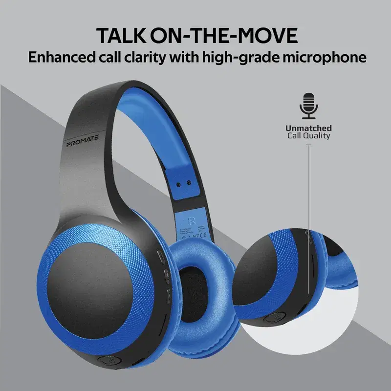 Deep Bass Over-Ear Wireless Headphones - Blue