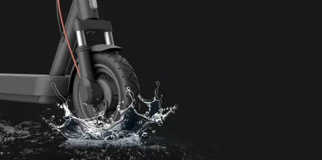 Large 10″ tubeless tires provide stability and comfortable rides.