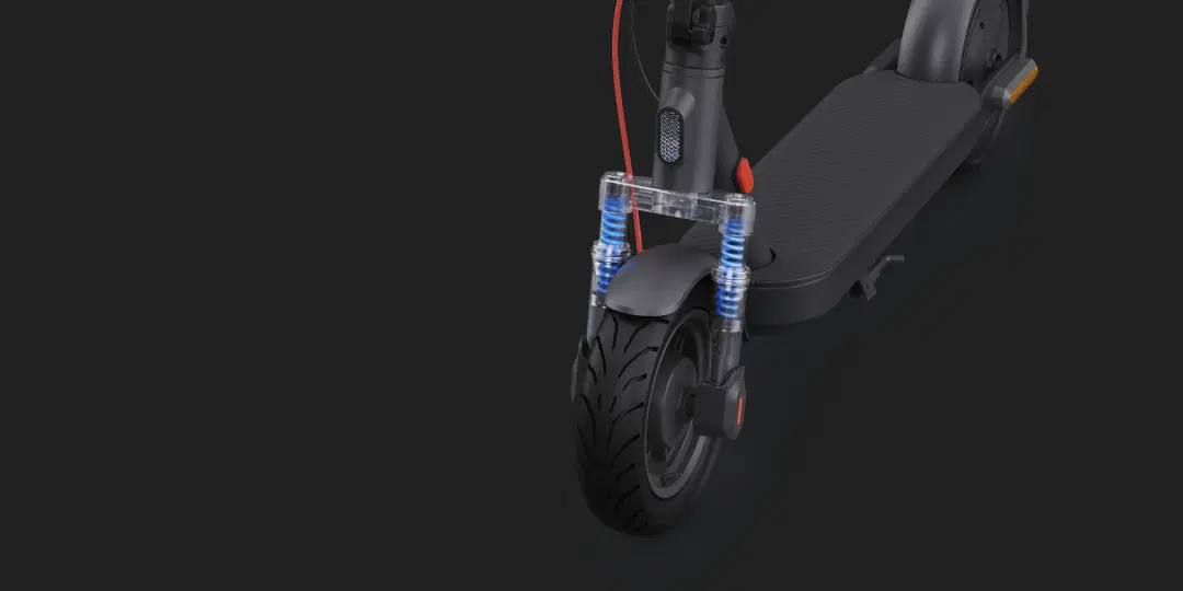 Dual‑spring front suspension enhances ride comfort over bumps and uneven surfaces.