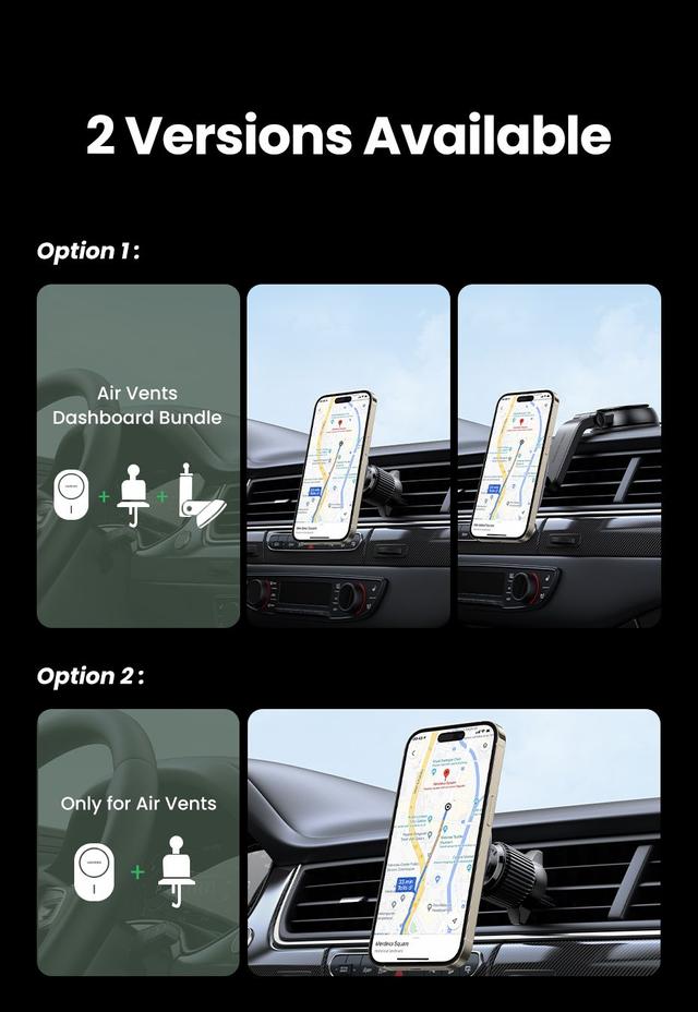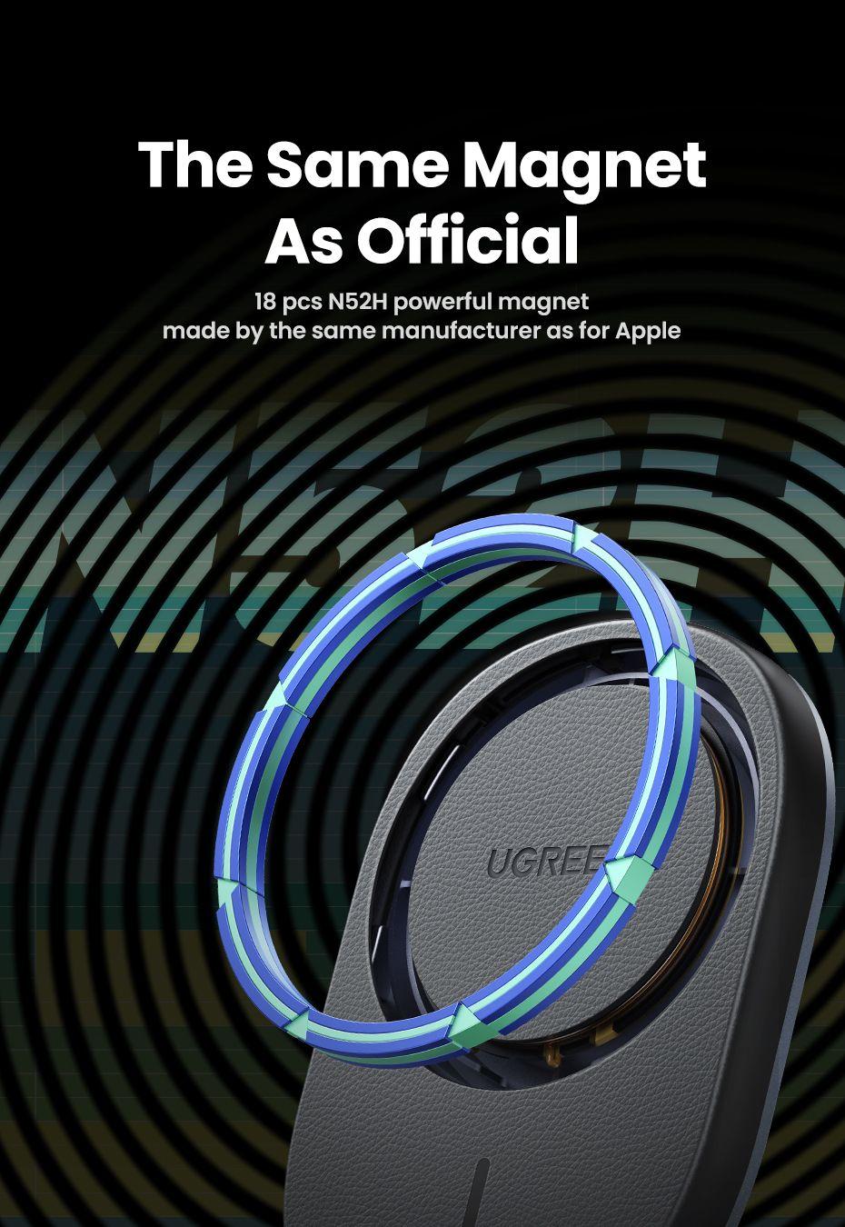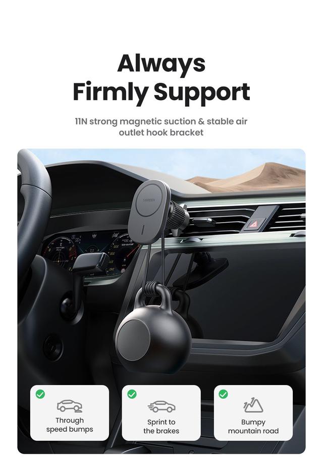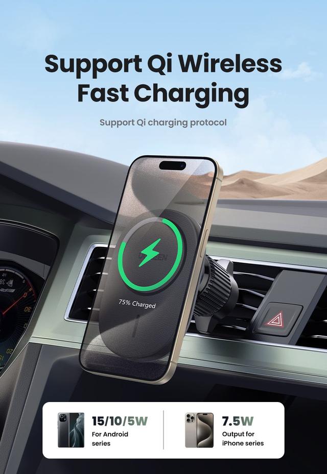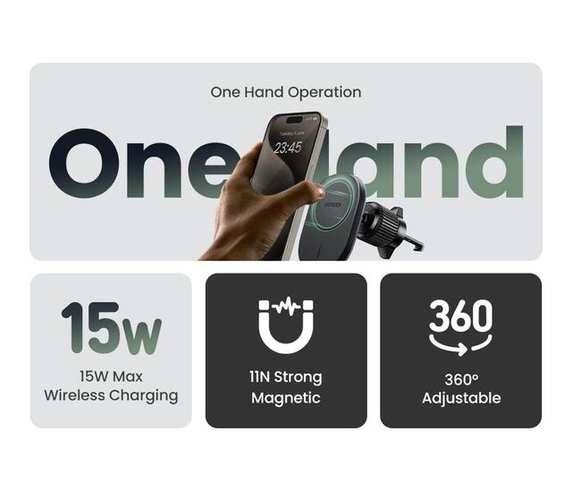 UGREEN Magnetic Car Wireless Charger 15W 2-in-1 MagSafe CD345 for car for cockpit/windshield/vent grille