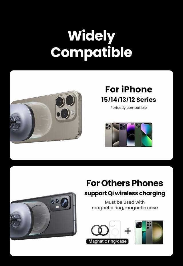 MagSafe Compatible: Only compatible with phone with magnetic cases. The strong suction force ensures a tight fit.