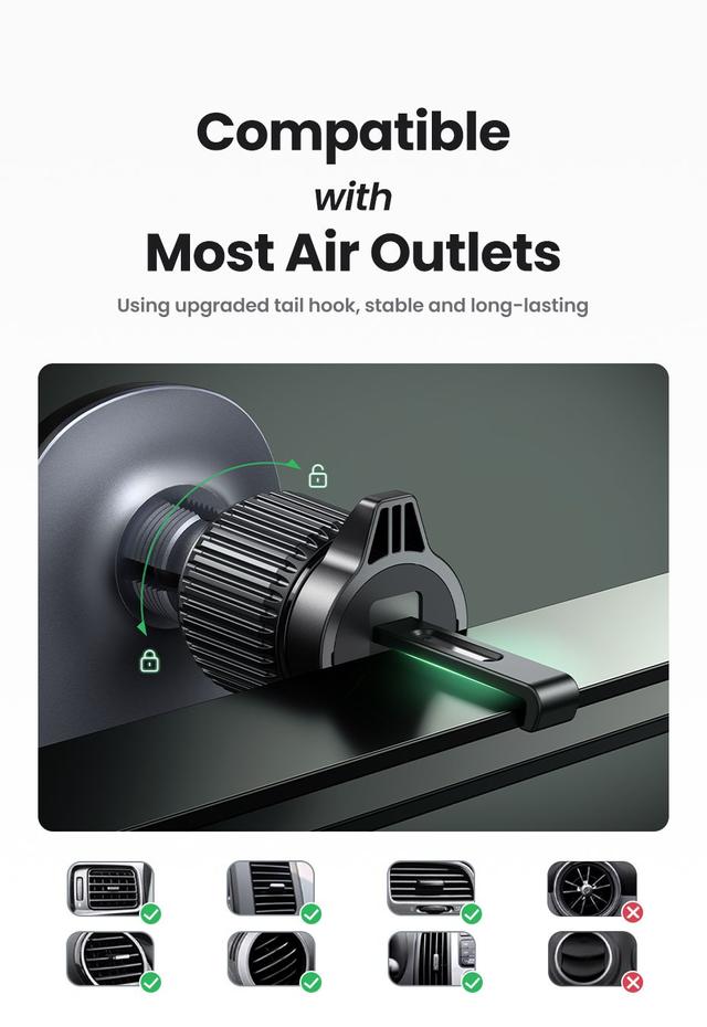 Easy Installation: Clips into any car air vent or sticks securely to dashboard/windshield using a 3M VHB adhesive pad. Compact design fits all cars.