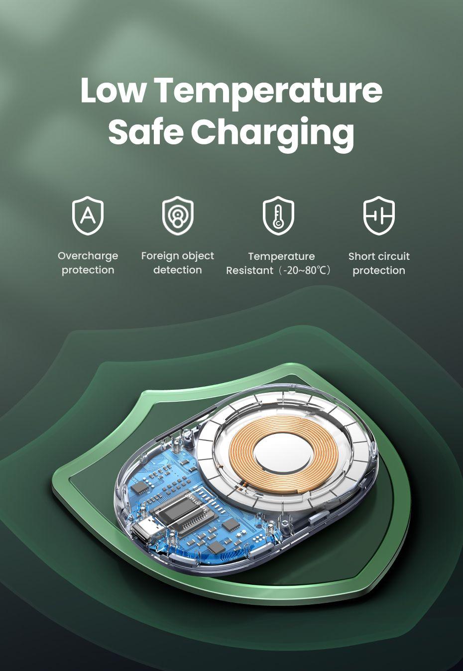 Fast Charging: Max 15W Qi wireless charging technology with large coil maximizes charging output and efficiency. Supports Qi 7.5W for iPhone 15/14/13/12 series and Qi 5W for AirPods.