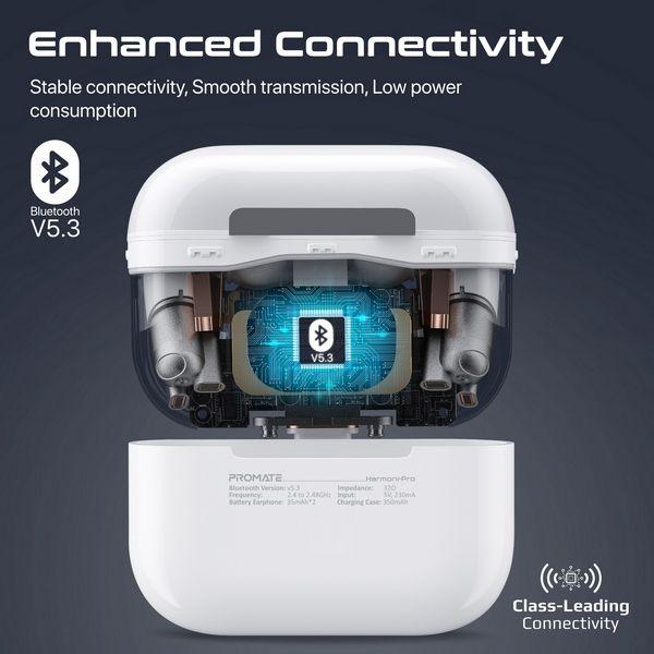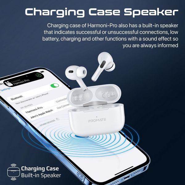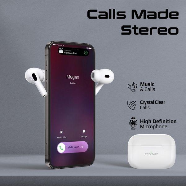 Promate Harmoni Pro High Definition InteliTouch TWS Earphone, With 350mAh Charging Case, Sleek Bluetooth v5.3, 20-20kHz Frequency Range, 32 Impedance, 10m Operating Distance, White | Harmoni-Pro.WH