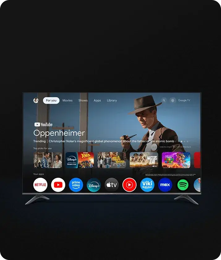 Google TV OS with built‑in voice assistant, smart recommendations and streaming apps.