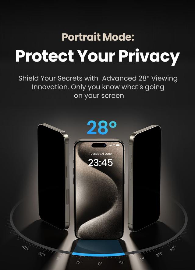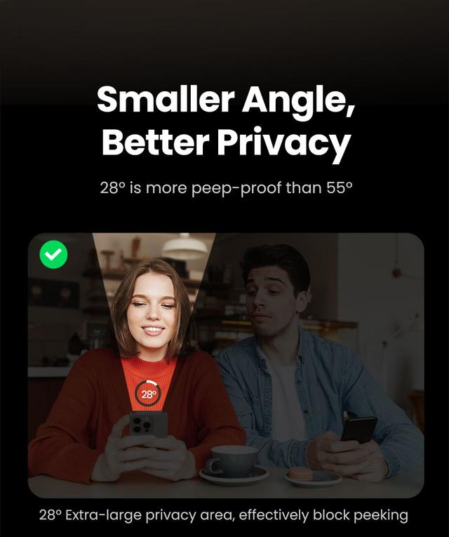 Are you tired of prying eyes invading your privacy while you work, play, or browse on your phone? Look no further than the Ugreen Privacy Screen Protector with Installation Frame! This innovative protector not only keeps your sensitive information safe from wandering eyes, but also offers flawless touch sensitivity, anti-fingerprint technology, and scratch and impact protection to keep your device looking and functioning like new. The 2.5D curved edge of this screen protector provides a sleek and seamless fit for your device, while the installation frame makes it easy to apply without any annoying bubbles or misalignments. Say goodbye to unsightly scratches and smudges, and hello to crystal-clear visibility and peace of mind. Don't let privacy concerns hold you back from using your device to its full potential. With the Ugreen Privacy Screen Protector, you can surf, stream, and socialize with confidence and style. Protect your privacy, protect your device, and protect your peace of mind with Ugreen.