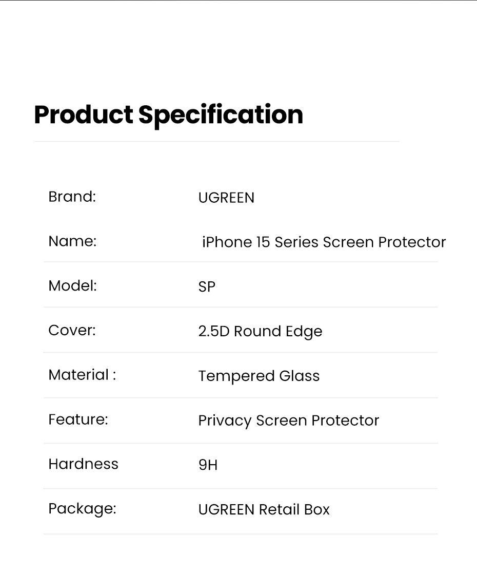 Ugreen Privacy Screen Protector with Installation Frame for iPhone 15 Pro Max SP409