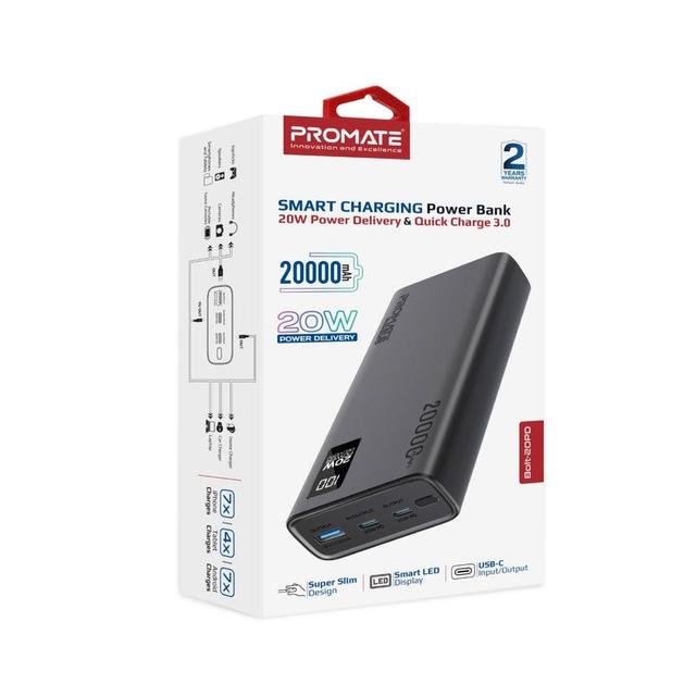 Promate Bolt‑20PD Power Bank — 20,000mAh, Fast 20W PD & QC 3.0