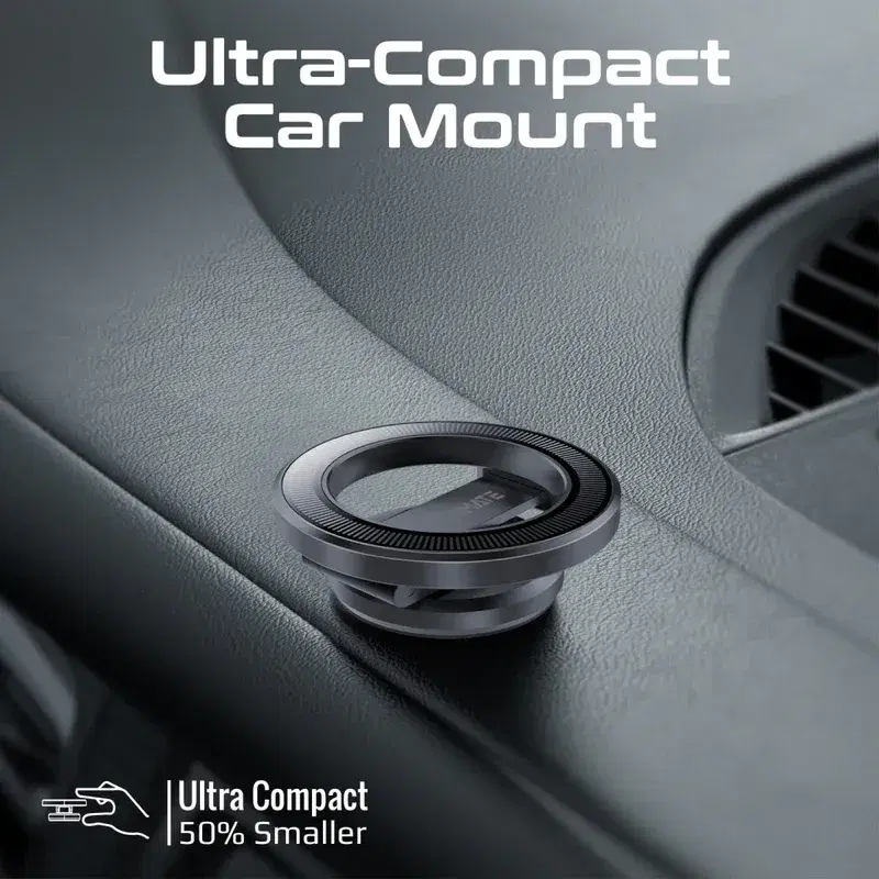 Discover the convenience of MagHoop-HG, the ultra-compact car phone mount featuring quick magnetic alignment with N52 magnets for a secure hold during every journey. With a 50% smaller design, this car mount ensures a compact and secure fit without compromising space. The 360° rotatable design provides flexible positioning for optimal viewing angles, promoting anti-distraction driving. The foldable mount allows for easy adjustment, and the cradleless design supports portrait and landscape modes. Embrace a stylish touch with the magnetic ring design that complements your smartphone and enhances your car's interior. Upgrade your driving experience with MagHoop-HG.